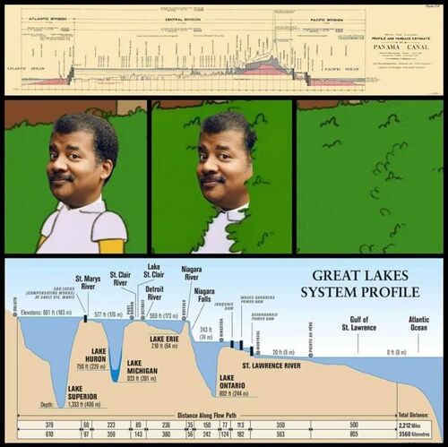 ⇒ パナマ運河(PANAMA CANAL)と五大湖(GREAT LAKES)の断面図とダムシステムなどについて